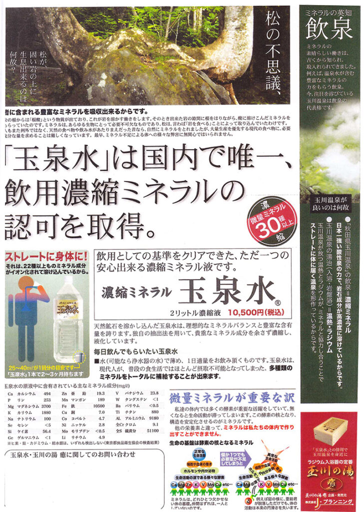 「秋田県玉川温泉」の飲泉 濃縮ミネラル